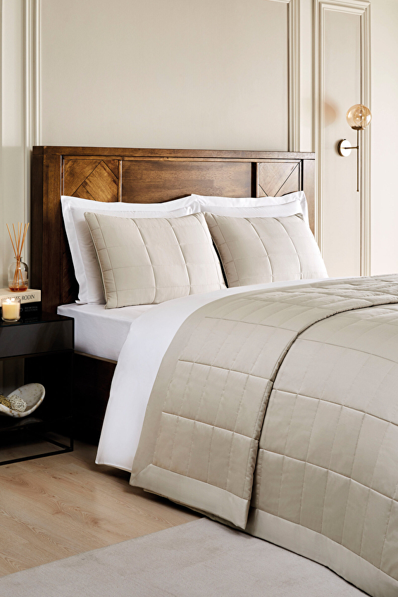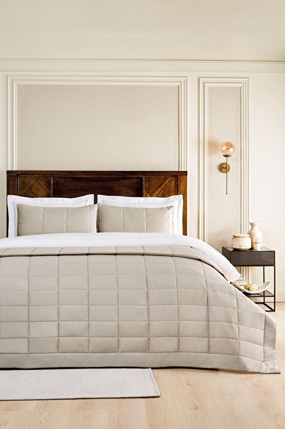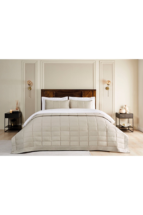 %100 pamuk saten dokusuyla ipeksi bir yumuşaklık sunan yatak örtüsü, konfor ve şıklığı bir araya getirerek yatak odanıza zarif bir dokunuş katar. Modern ve sade çizgilerle tasarlanan estetik görünümü, her dekorasyon stiline kolayca uyum sağlar. Nefes alabilen yapısı sayesinde dört mevsim boyunca rahat bir kullanım sunar.
