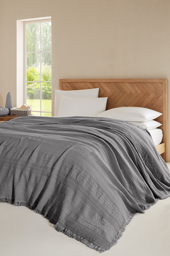 Yatak odanıza hem şıklık hem de konfor katacak yatak örtüsü, doğal dokusuyla sağlıklı ve rahat bir kullanım sunar. Nefes alabilen %100 pamuk yapısı sayesinde dört mevsim kullanılabilir. Modern ve zarif dokusu, yatak odanıza şık bir görünüm kazandırır. Dayanıklı yapısı uzun süreli kullanım imkânı sağlar.