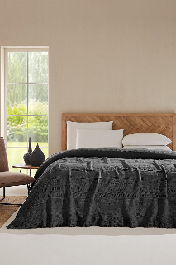Yatak odanıza hem şıklık hem de konfor katacak yatak örtüsü, doğal dokusuyla sağlıklı ve rahat bir kullanım sunar. Nefes alabilen %100 pamuk yapısı sayesinde dört mevsim kullanılabilir. Modern ve zarif dokusu, yatak odanıza şık bir görünüm kazandırır. Dayanıklı yapısı uzun süreli kullanım imkânı sağlar.
