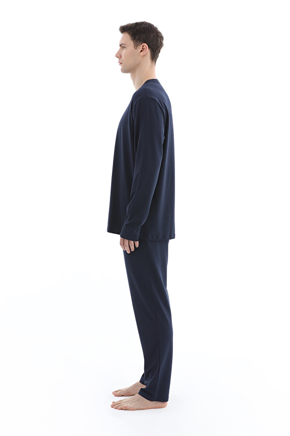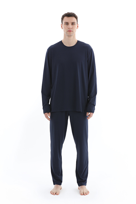 Cottons & Clouds Bisiklet Yaka Uzun Kol Loose Fit Pamuk-Modal Erkek Pijama Üstü CC6132 Lacivert