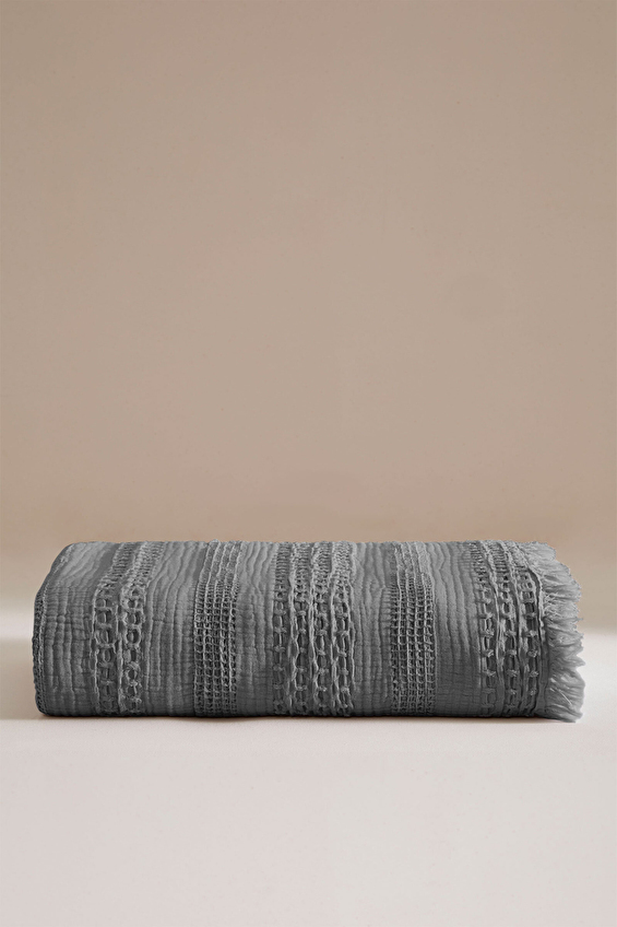 Cottons & Clouds Striped Waffle Throw Örtü 140 x 245 cm