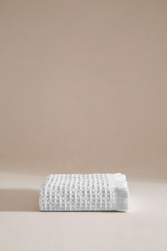 Püsküllü detayları ve sade tasarımıyla banyonuza zarif bir şıklık katar. %100 pamuk dokusu sayesinde cildinize ipeksi bir dokunuş sunar. Cilde nazikçe temas eder ve hidrofil özelliğiyle suyu hızlıca emer. Banyonuzda estetik bir atmosfer oluştururken, hafif yapısıyla seyahatlerde de pratik kullanım sağlar. Dayanıklı dokusu sayesinde uzun yıllar boyunca güvenle kullanılabilir.