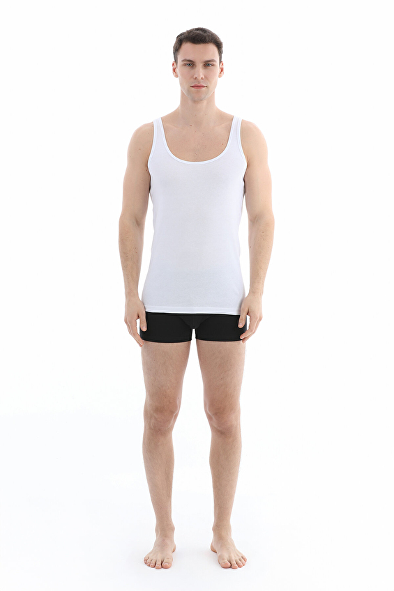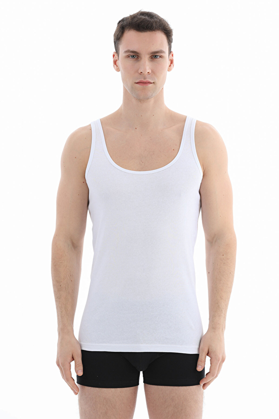 Cottons & Clouds Erkek İkili Ribanalı U Yaka Kalın Askılı Atlet CC9485 Beyaz/beyaz