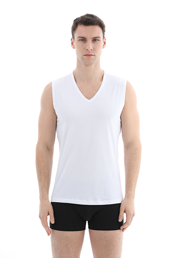 Cottons & Clouds Erkek İkili V Yaka Kalın Askılı Atlet CC9677 Beyaz/beyaz