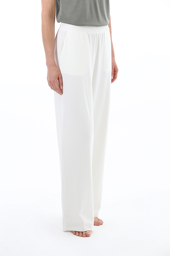 Cottons & Clouds Palazzo Paça Lastikli Bel Loose Fit Pamuk-Modal Kadın Pijama Altı CC7133 Ekru