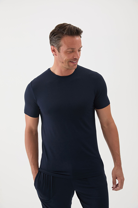 Cottons & Clouds Loose Fit Kısa Kollu Erkek Mikro Modal Şort Takımı CC9086 Lacivert