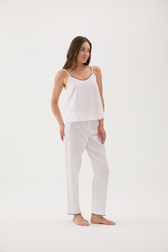 Cottons & Clouds Loose Fit İp Askılı Kadın Çoban Dikiş Pijama Üstü CC9582 Beyaz