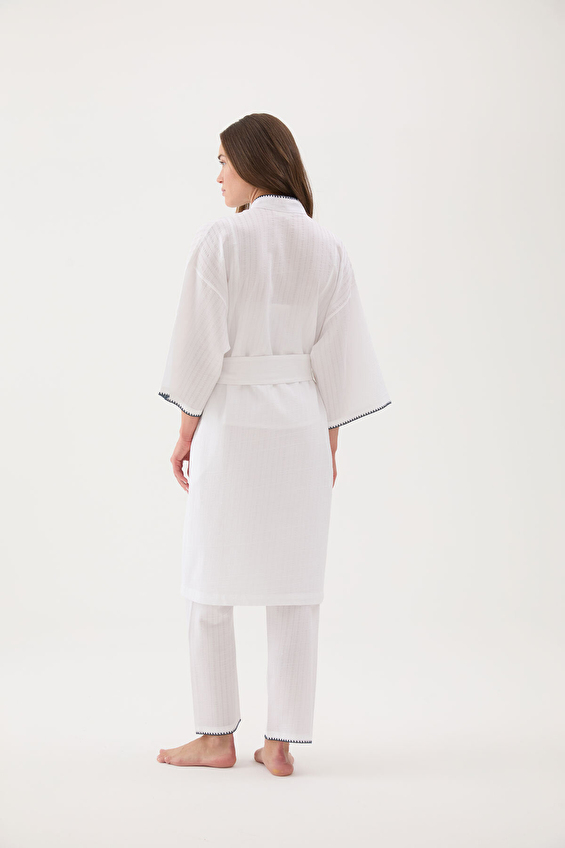 Cottons & Clouds Uzun Kollu Loose Fit Kadın Kuşaklı Çoban Dikiş Sabahlık CC9584 Beyaz