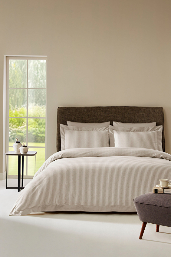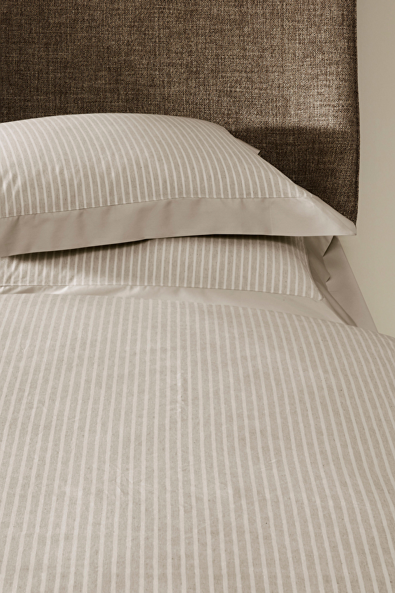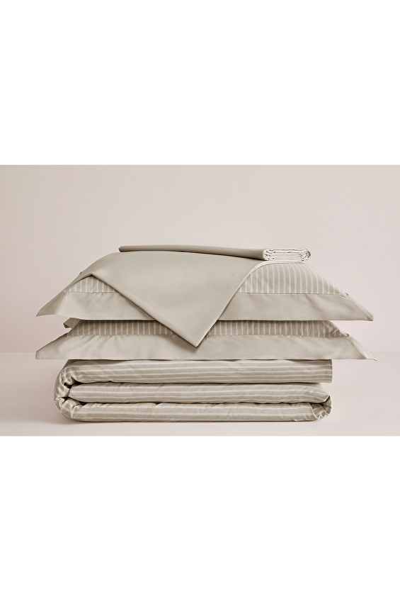 Cottons & Clouds Stripe LinenLastikli Çarşaf Süper King Size Keten Çizgili Pamuk Nevresim Takımı