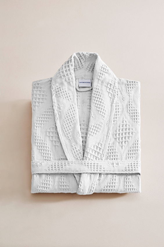 Cottons & Clouds Lattice Şal Yaka Bornoz