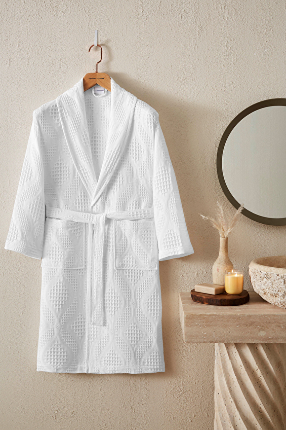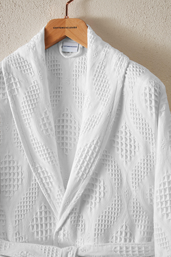 Cottons & Clouds Lattice Şal Yaka Bornoz