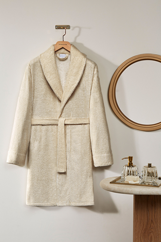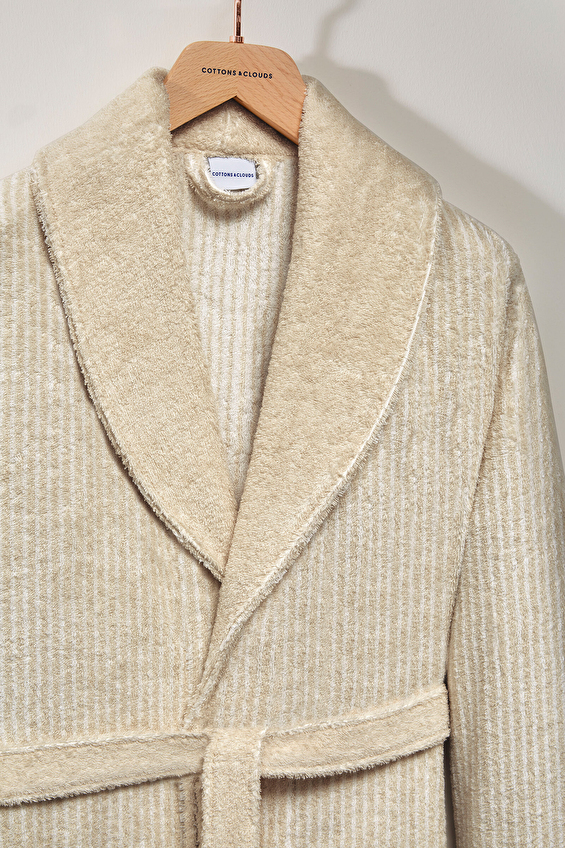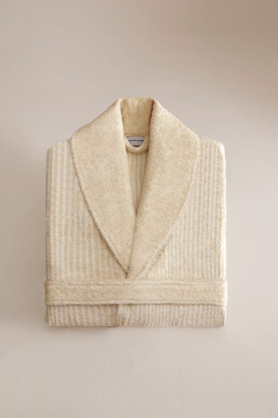 Cottons & Clouds Ruled Şal Yaka Bornoz