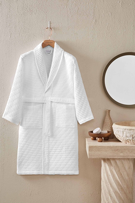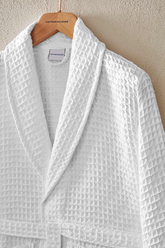 Cottons & Clouds Waffle Diagonal Şal Yaka Bornoz