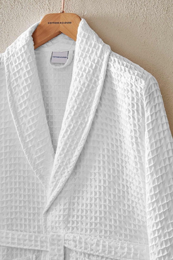 Cottons & Clouds Waffle Diagonal Şal Yaka Bornoz