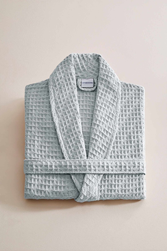 Cottons & Clouds Waffle Diagonal Şal Yaka Bornoz