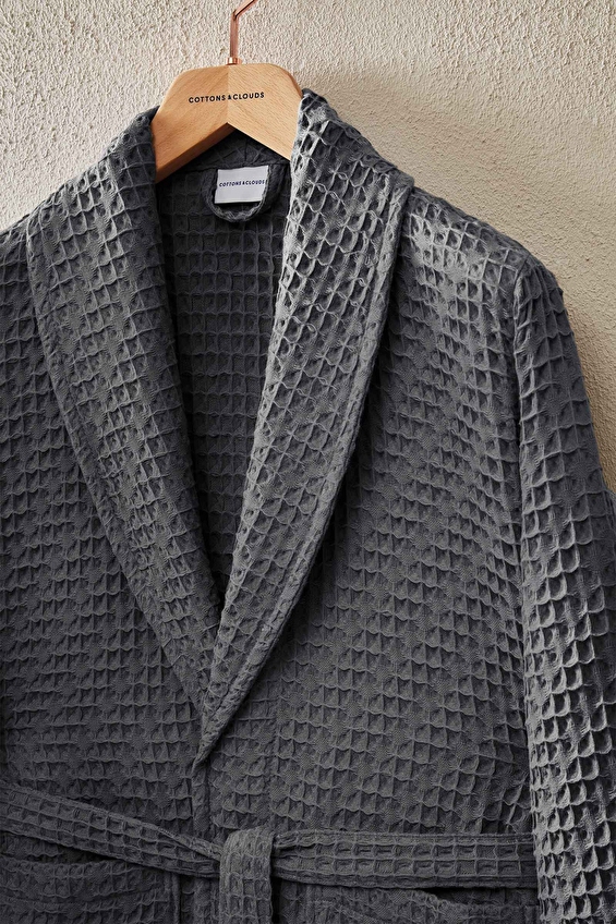 Cottons & Clouds Waffle Diagonal Şal Yaka Bornoz